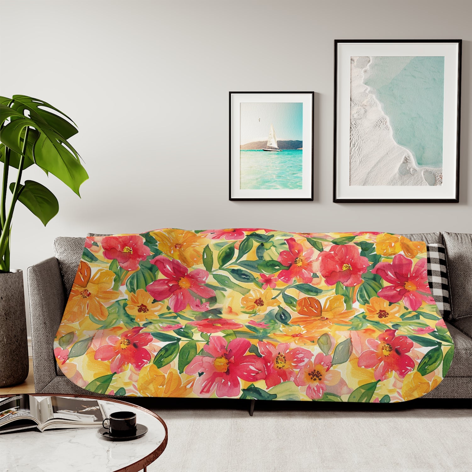 Vibrant Floral Sherpa Blanket