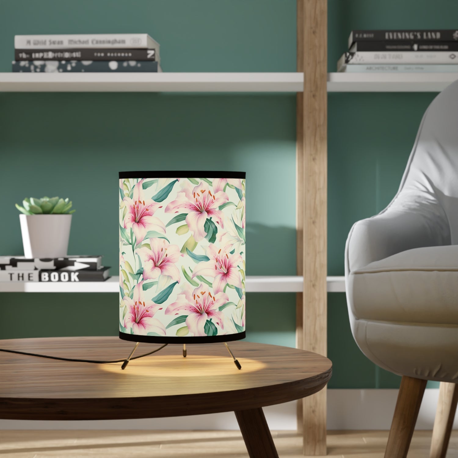 lluminate your space with this stunning Tripod Lamp. Featuring a beautifully designed high resolution printed shade adorned with lush floral patterns, this lamp adds a touch of elegance to any room.